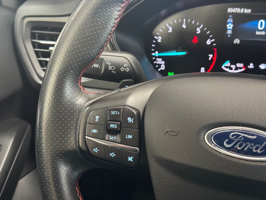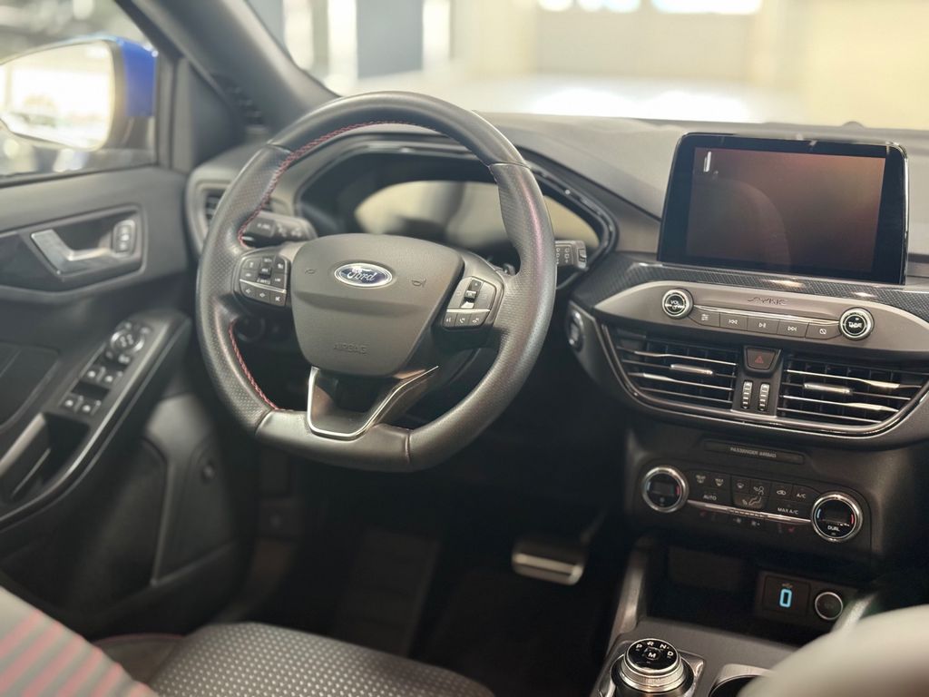 Airbag Beifahrerseite abschaltbar, Antischlupfregelung (ASR), Audio-Navigationssystem Ford mit AppLink, Außenspiegel elektr. anklappbar, Außenspiegel elektr. verstell- und heizbar, Blinkleuchte in Außenspiegel integriert, Body-Styling-Paket, Bord-/Verbrauchscomputer, Dachhimmel Stoff, dunkel, Dachspoiler Wagenfarbe, Dimmer Instrumentenbeleuchtung, Doppelendrohr Auspuffanlage, Elektr. Bremskraftverteilung (EBD), Fahrassistenz-System: Berganfahr-Assistent (Hill-Holder), Fahrassistenz-System: Notbrems-Assistent, Fahrassistenz-System: Post-Collision-System, Fahrassistenz-System: Pre-Collision-System, Fahrassistenz-System: Spurhalteassistent, Farbdisplay für Bordcomputer, Fensterheber elektrisch vorn + hinten mit Komfortschließung, FordPass Connect inkl. eCall, Fußmatten Velours - vorn, Gepäckraumabdeckung / Rollo, Getriebe Automatik - Typ: 8F24 (8-Stufen), Innenraumfilter: Staub- und Pollenfilter, Intelligent Protection System (IPS), Intelligenter Geschwindigkeits-Begrenzer, Isofix-Aufnahmen für Kindersitz, Karosserie: 5-türig, Kopfstützen hinten mechan. verstellbar (3 Stück), Kopfstützen vorn 4-fach verstellbar, Lenkrad (Sport/Leder, ST), Lenkrad mit Schaltwippen, Lenksäule (Lenkrad) höhen-/längsverstellbar, Motor 1,5 Ltr. - 110 kW EcoBoost KAT (1496 ccm), My Key (2. Fahrzeugschlüssel programmierbar), Nebelscheinwerfer LED, Otto-Partikelfilter (OPF), Parkbremse elektrisch mit Auto-Hold-Funktion, Parkpilotsystem vorn und hinten, Pedale Aluminium, Reifendruck-Kontrollsystem, Reserverad als Notrad, Rücksitzlehne geteilt/klappbar (60:40), Schadstoffarm nach Abgasnorm Euro 6d-TEMP, Schalt-/Wählhebelgriff Aluminium, Schaltpunktanzeige, Scheinwerfer mit abgedunkelten Hintergrund, Scheinwerfer-Assistent mit Tag-/Nachtsensor, Sonnenblende links mit Spiegel, Sonnenblende rechts mit Spiegel, Sport-Fahrwerk, Sportsitze vorn, Start/Stop-Anlage, Verglasung getönt, Warnanlage für Sicherheitsgurte hinten, Warnanlage für Sicherheitsgurte vorn, Zylinderabschaltung