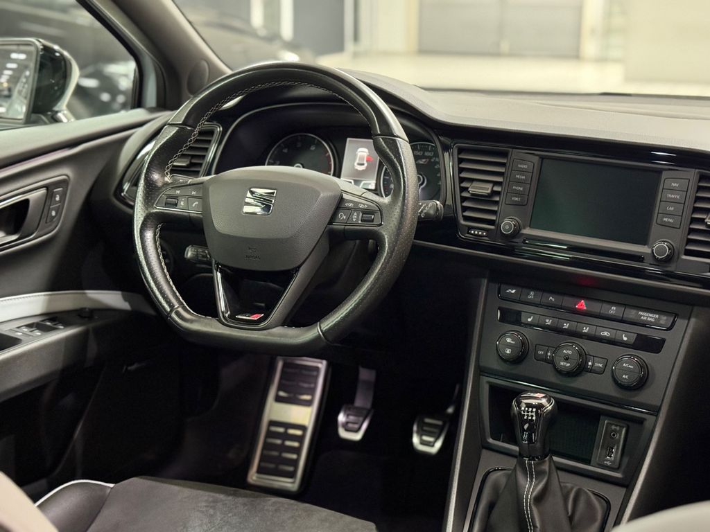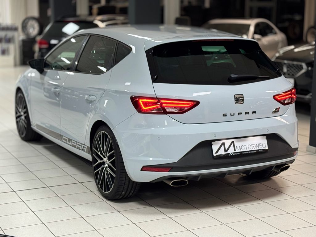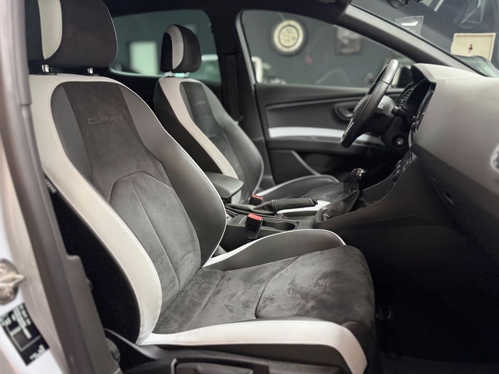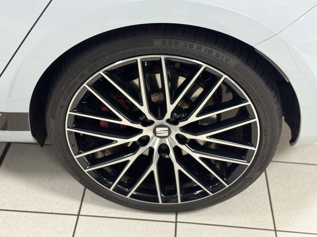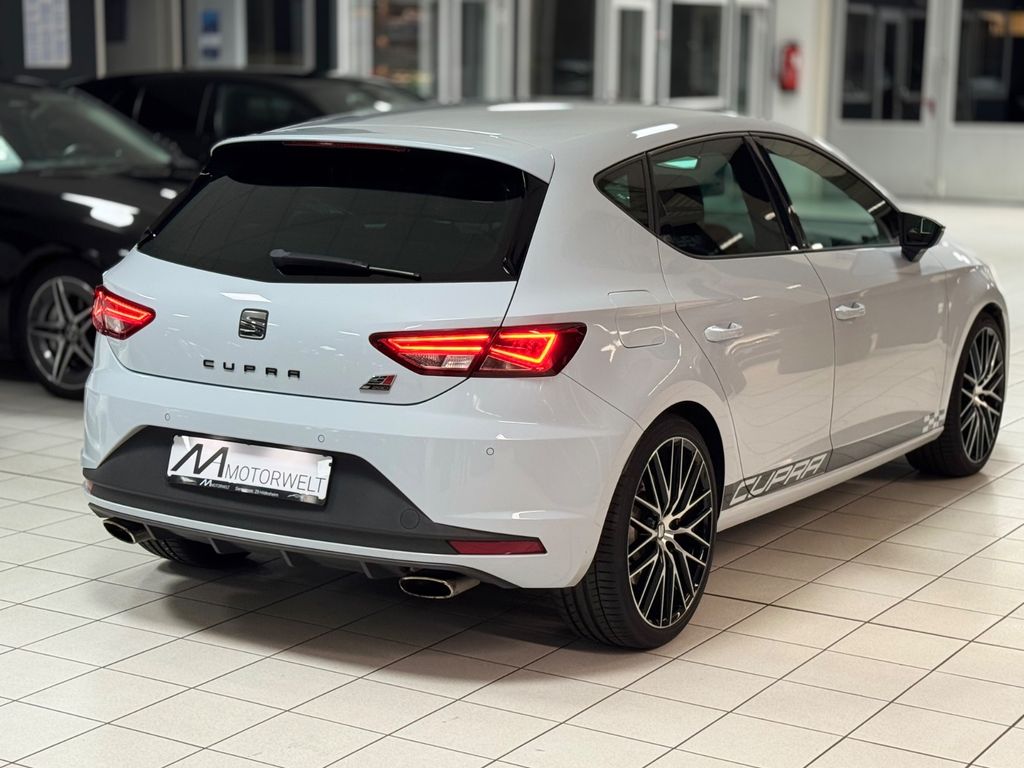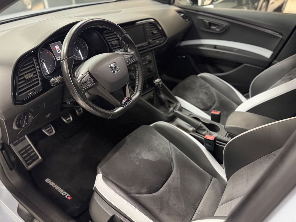 Ablage-Paket, Airbag Beifahrerseite abschaltbar, Airbag Fahrer-/Beifahrerseite, Ambiente-Beleuchtung LED, Antriebs-Schlupfregelung (ASR), Außenspiegel elektr. anklappbar, Außenspiegel elektr. verstell-, heiz- und anklappbar, beide, Außenspiegel mit Spiegelabsenkung, rechts, Außentemperaturanzeige, Bordcomputer, Bremsassistent, Bremssättel Rot lackiert mit Schriftzug, Dachhimmel schwarz, Dynamic-Paket, Elektron. Differentialsperre (EDS), Fahrassistenz-System: Berganfahr-Assistent (Hill-Holder), Fahrassistenz-System: Fahrprofilauswahl (SEAT Drive Profile), Fensterheber elektrisch hinten, Handschuhfach beleuchtet, Heckspoiler, Innenraumlicht-Paket LED, Isofix-Aufnahmen für Kindersitz, Karosserie: 5-türig, Kennzeichenbeleuchtung LED, Klimaanlage Climatronic 2-Zonen, Knieairbag Fahrerseite, Kopf-Airbag-System, Kopfstützen hinten (3-fach), Kopfstützen vorn verstellbar, Lendenwirbelstütze Sitz vorn links, verstellbar, Lendenwirbelstütze Sitz vorn rechts, verstellbar, Lenkrad (Sport/Leder), Licht- und Sicht-Paket, LM-Felgen, Motor 2,0 Ltr. - 213 kW 16V TSI, Reifenkontroll-Anzeige, Rücksitzlehne geteilt/klappbar (1/3-2/3), Schadstoffarm nach Abgasnorm Euro 6, Schalt-/Wählhebelgriff Leder, Scheinwerfer LED, Seitenairbag, Seitenscheiben hinten und Heckscheibe abgedunkelt, Sitz vorn links höhenverstellbar, Sitz vorn rechts höhenverstellbar, Sitzbezug / Polsterung: Leder / Alcantara, Sonnenblende links mit Spiegel (beleuchtet), Sonnenblende rechts mit Spiegel (beleuchtet), Sport-Fahrwerk FR / Cupra, Start/Stop-Anlage, Steckdose (12V-Anschluß) vorn, Wärmeschutzverglasung